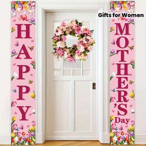 1 set of Mother's Day porch banner flags with “Happy Mother's Day” text, a Mother's Day gift for Mom