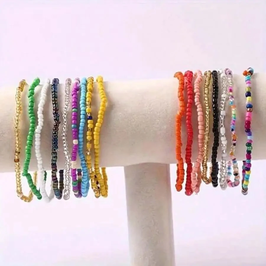 17pcs/Set Random Bohemian Vacation Colorful Beads Stacked Bracelets-Handmade Glass Bead Jewelry For Men And Women
