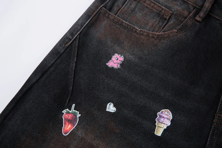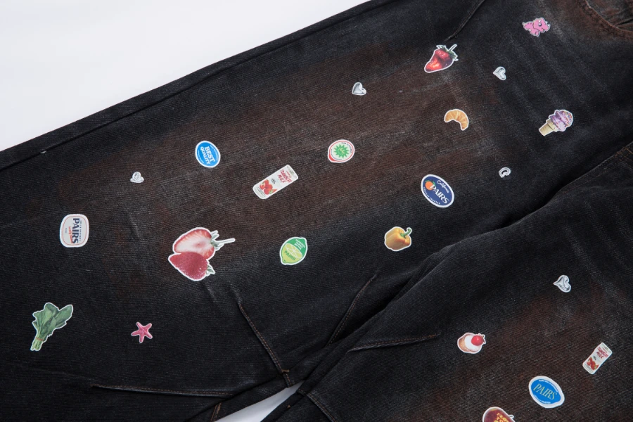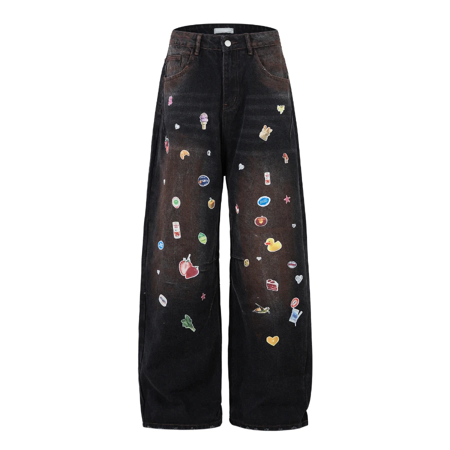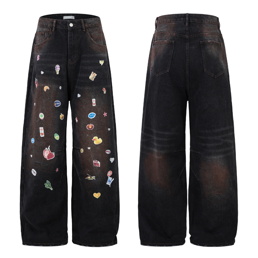 #N01 Cartoon Fun Print Wide Leg Jeans for Men 2025ss Spring Loose Long Pants